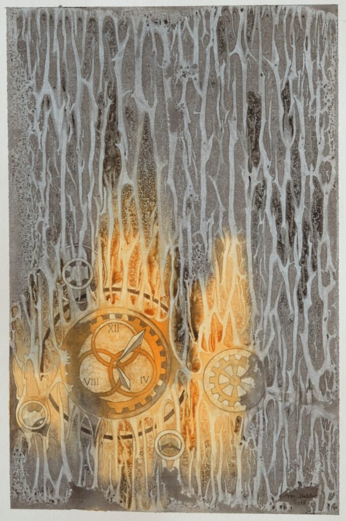 In 2018 I developed a watercolor painting process which results in a similar way to painting self-organigation on paper – attractive structures developed. As a result this process is now occasionally part of my newest watercolor technique. The outcome is shown on this page.